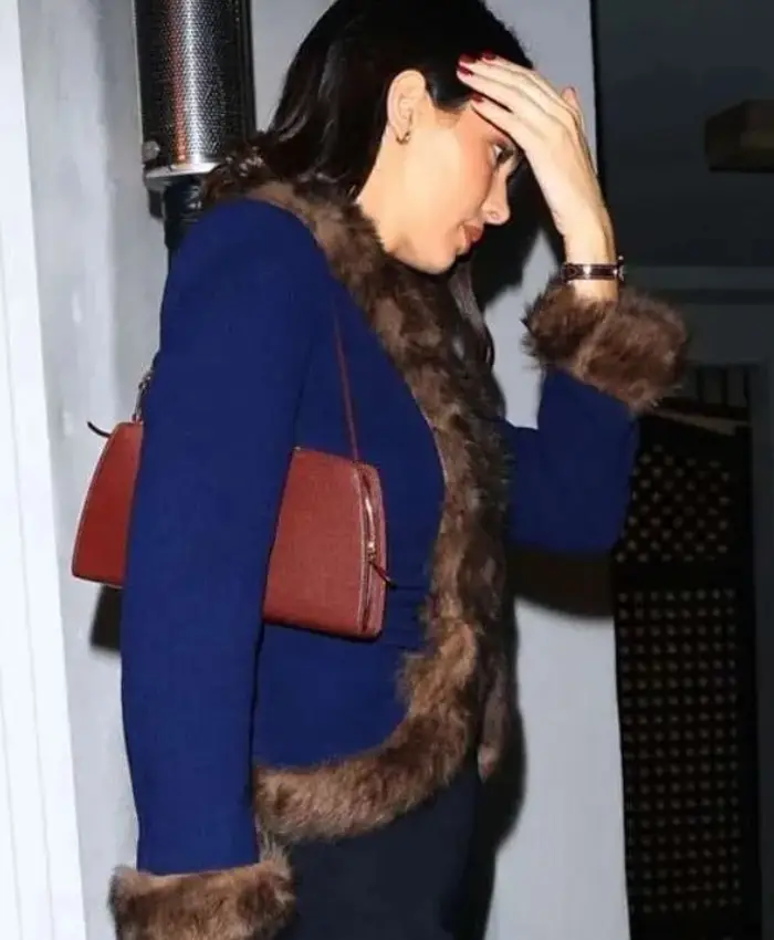 Kendall Jenner Celebrity 2025 Kendall Jenner Blue Fur Blazer Blue Fur Blazer For Women