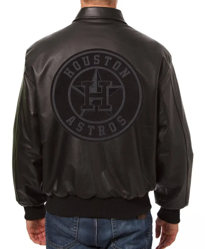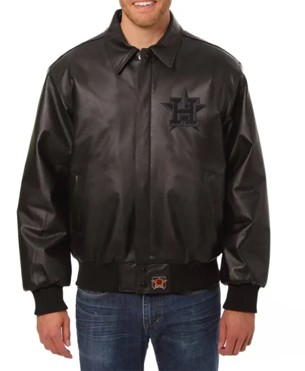 Houston Astros Black Leather Full Snap Bomber Jacket For Men and Women
