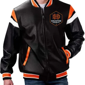 Buy Houston Dynamo FC Black Leather Bomber Jacket For Mens