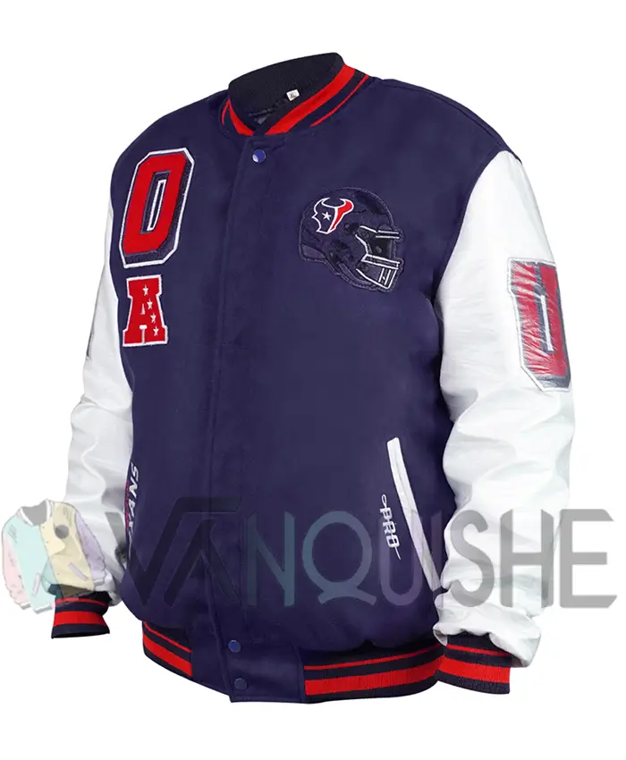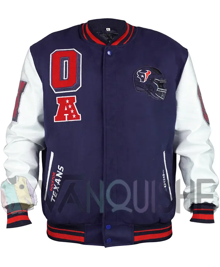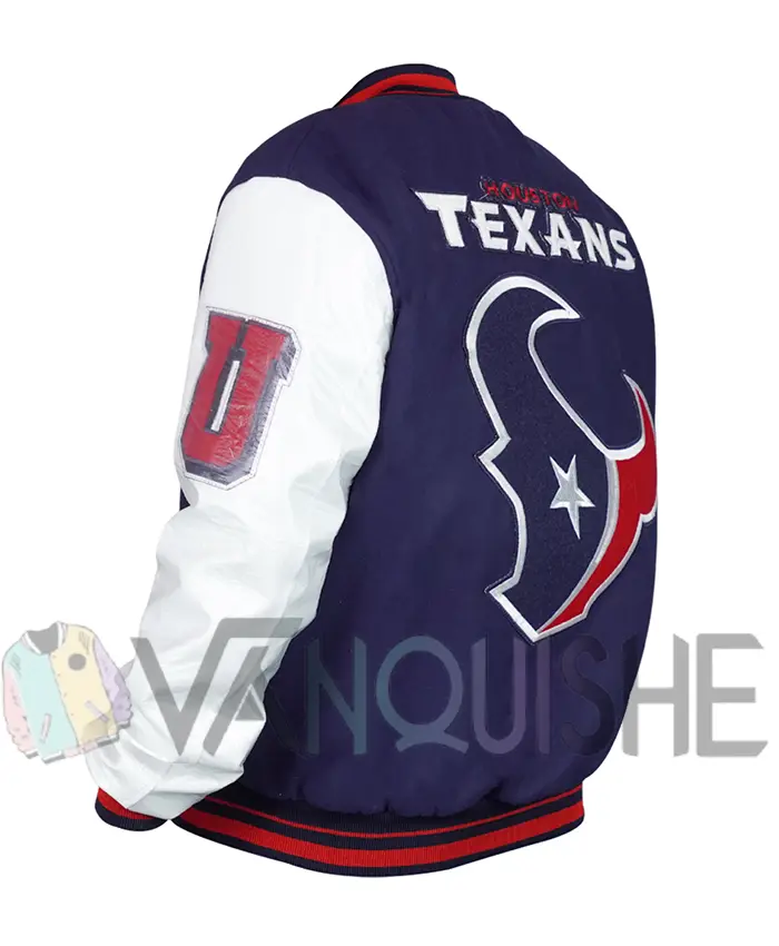 Houston Texans Mashup Classic Rib Navy and White Varsity Jacket For Men and Women
