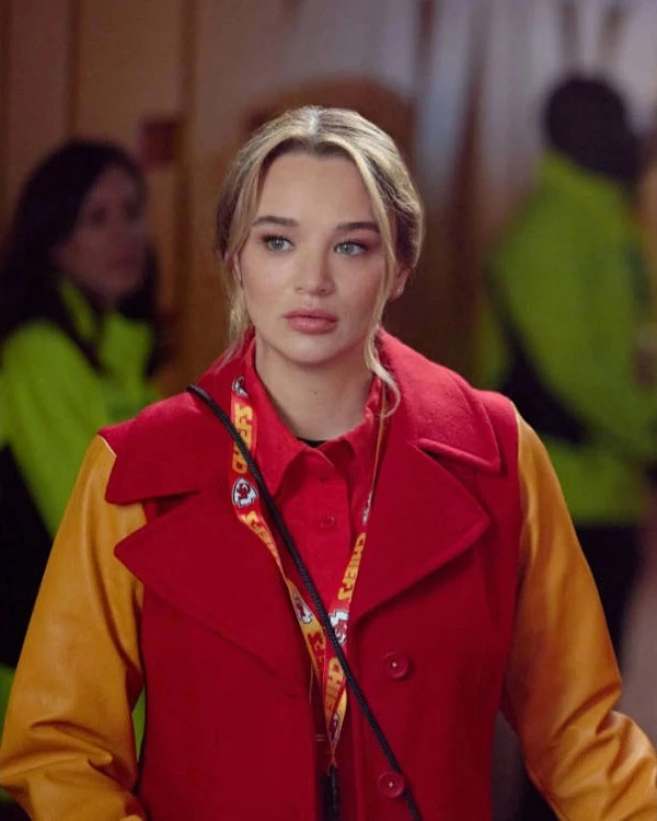 Alana Higman Movie Holiday Touchdown: A Chiefs Love Story 2024 Hunter King Yellow and Red Long Coat