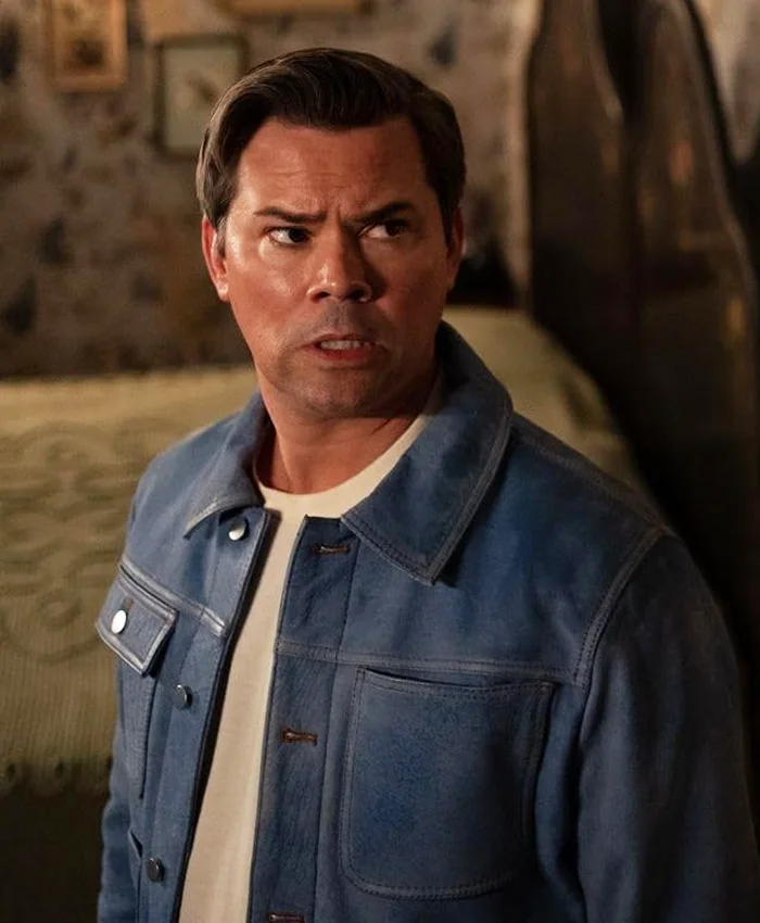 Andrew Rannells Movie I Don’t Understand You 2025 Cole Blue Leather Jacket