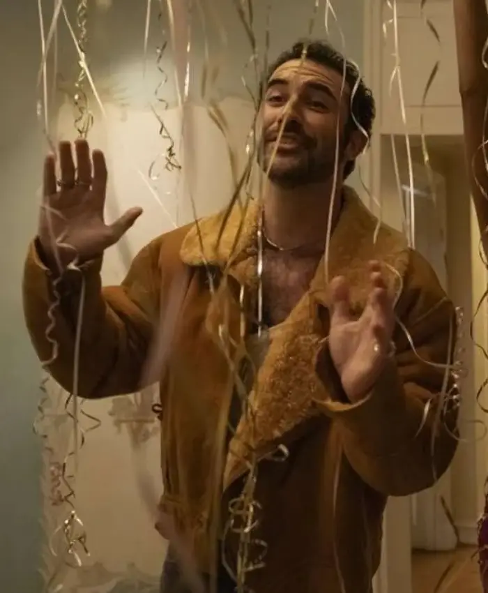 Jordan Firstman I Love LA TV Series 2025 Charlie Cohen Brown Suede Shearling Leather Jacket