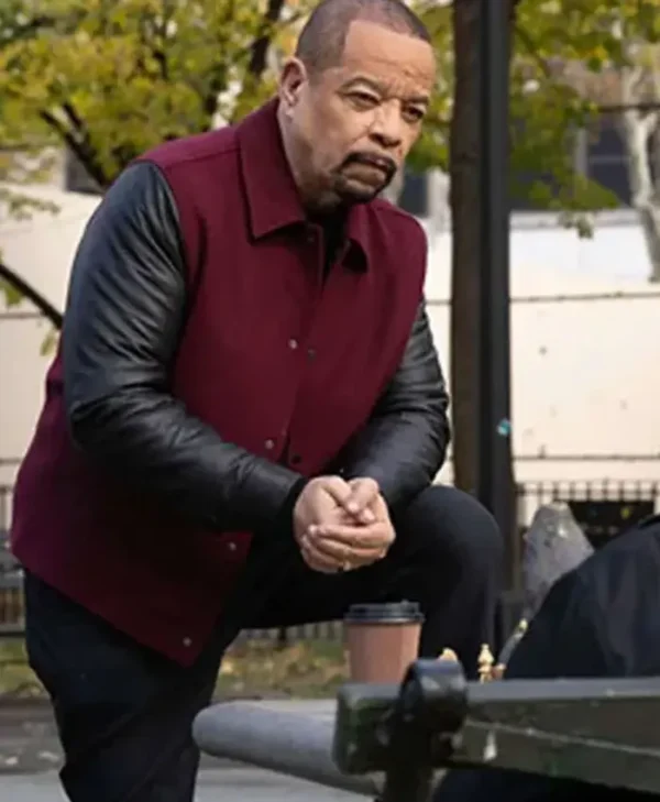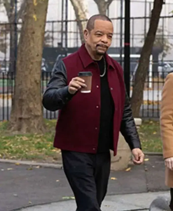 Ice-T Law & Order: SVU TV Series 2025 Odafin Tutuola Maroon and Black Leather Jacket