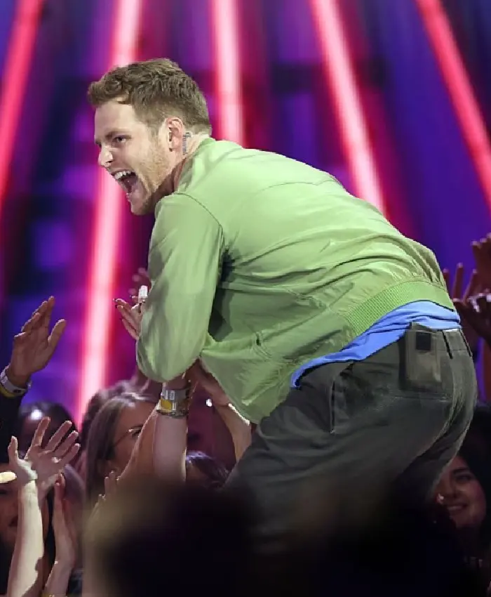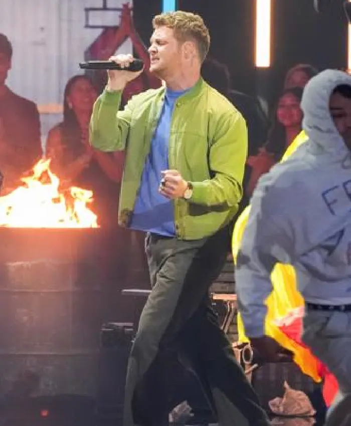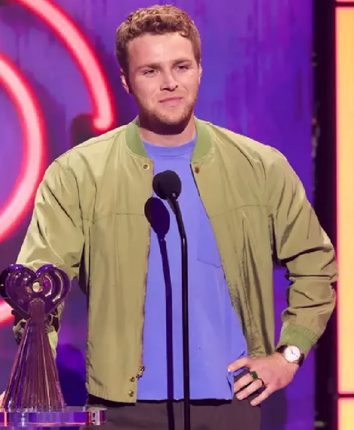 Alex Warren 2026 iHeartRadio Music Awards Green Satin Bomber Jacket On Sale For Men and Women