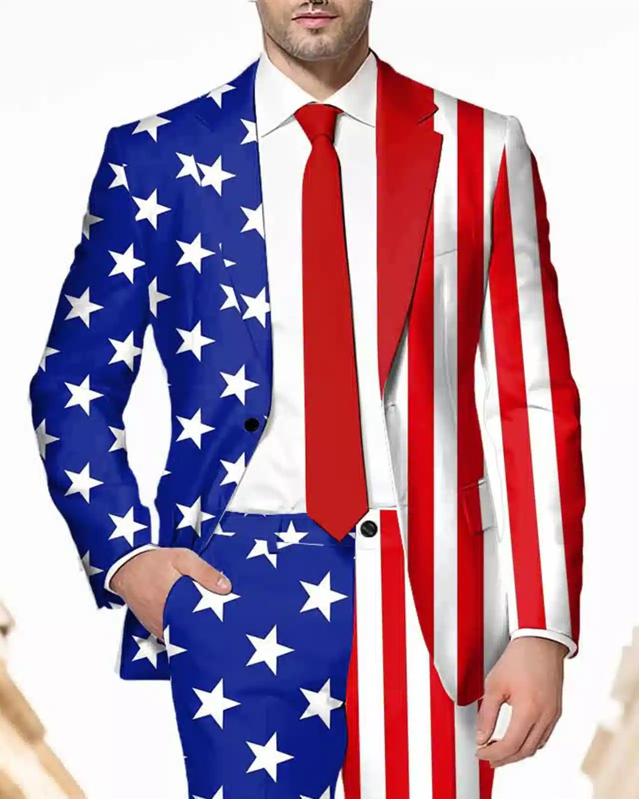 Independence Day July 4th Lapel Collar One Button Closure Suit Jacket For Men and Women