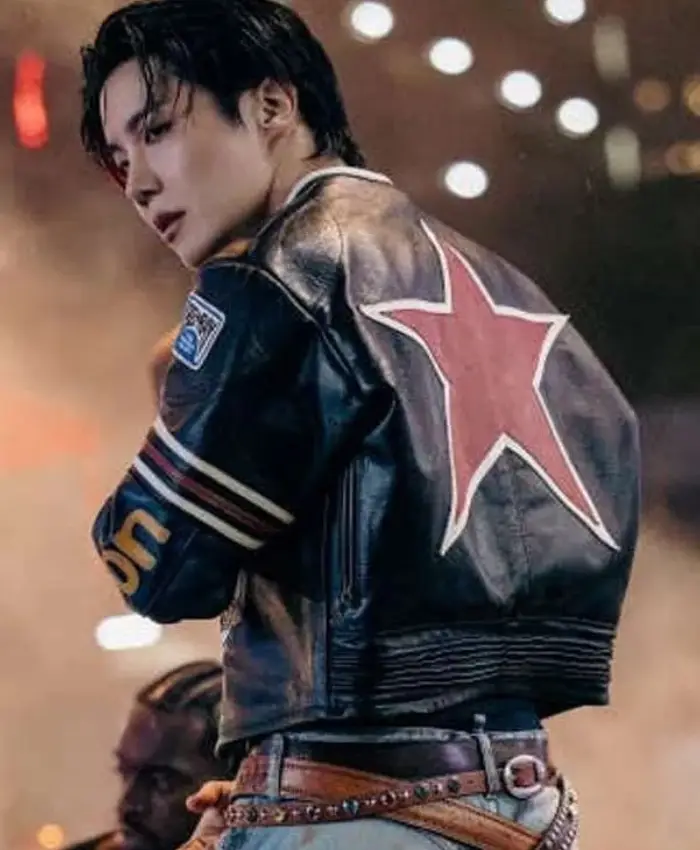 J-Hope Killin’ It Girl Music Look 2025 Jung Ho-seok Black Genuine Leather Jacket Mens and Womens