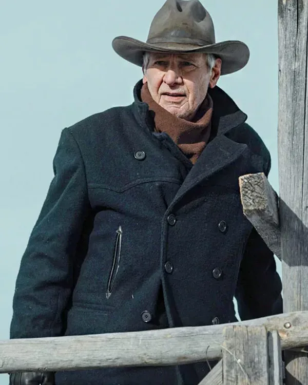 Harrison Ford TV Series 1923 2025 Jacob Dutton Blue Wool PeaCoat For Sale