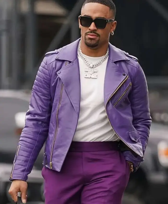 Jalen Hurts NFL Series 2024 Jalen Hurts Purple Leather Jacket For Mens For Sale