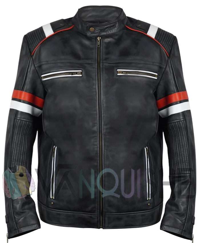 Be the first to review “James Men’s Brown Striped Cafe Racer Leather Jacket” Cancel reply