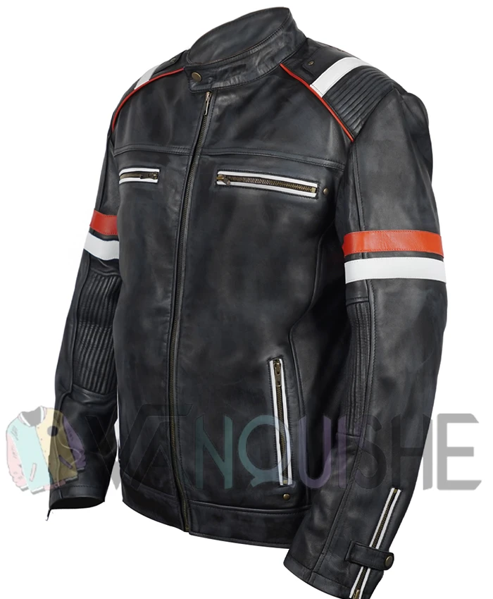 James Mens Brown Striped Cafe Racer Leather Jacket James Brown Striped Leather Jacket For Mens