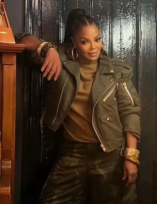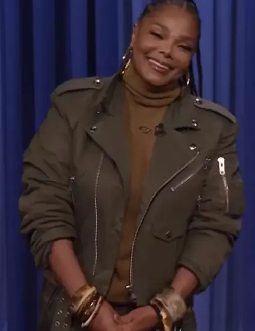 Buy Men And Women The Tonight Show Starring Jimmy Fallon 2024 Janet Jackson Green Biker Jacket For Sale