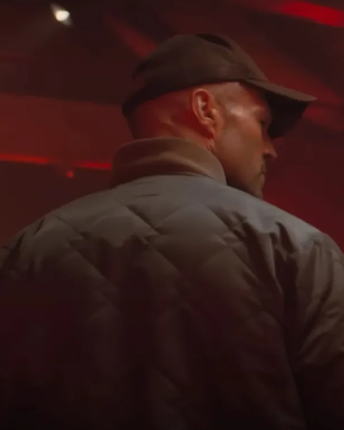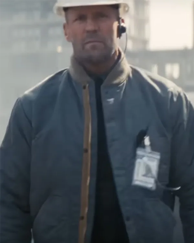 Levon Cade Movie A Working Man 2025 Jason Statham Grey Quilted Bomber Jacket