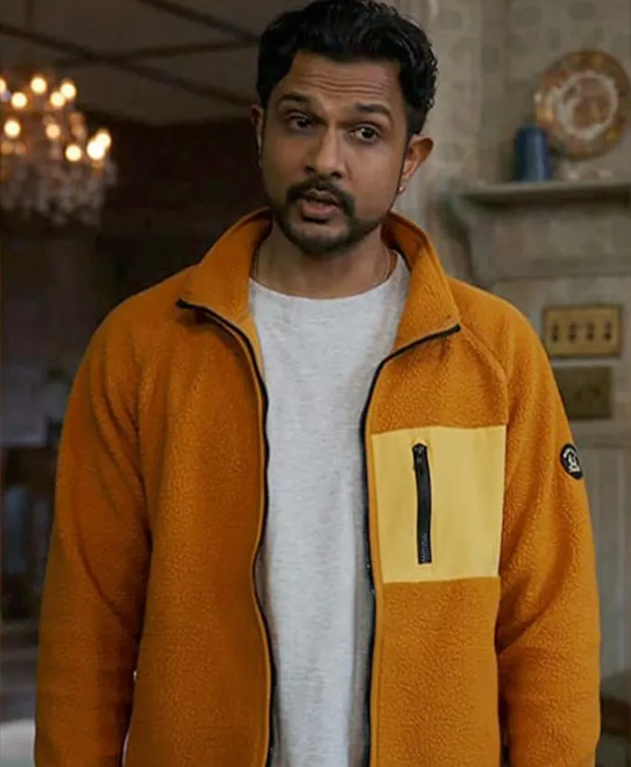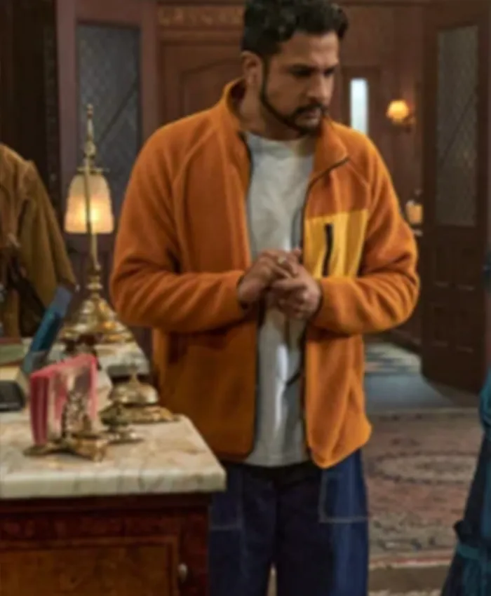 In the series Ghosts, Jay, portrayed by Utkarsh Ambudkar, is a lively character who brings humor and charm to the show. As a modern-day man living in a haunted mansion, he navigates the challenges of cohabiting with ghosts from different historical eras. Jay’s character is often seen wearing stylish outfits that reflect his vibrant personality, including the notable orange zip-up jacket from Season 3. This jacket not only complements his character’s playful nature but also serves as a functional piece of clothing that fits well within the show’s comedic yet heartfelt narrative.