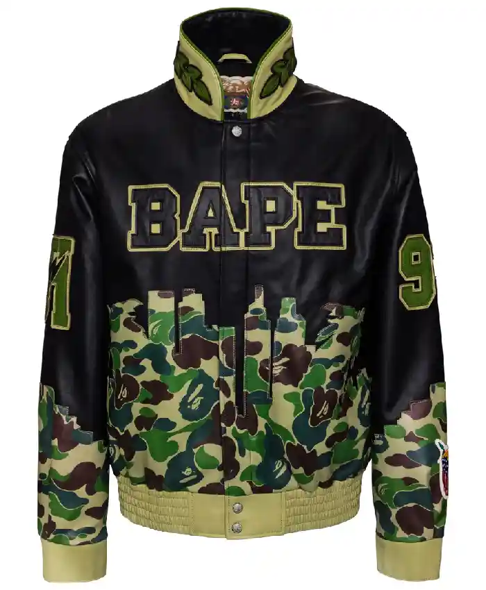 Jeff Hamilton Jeff Hamilton x BAPE Camo Style Leather Bomber Jacket For Men and Women