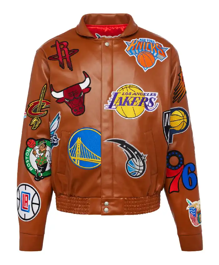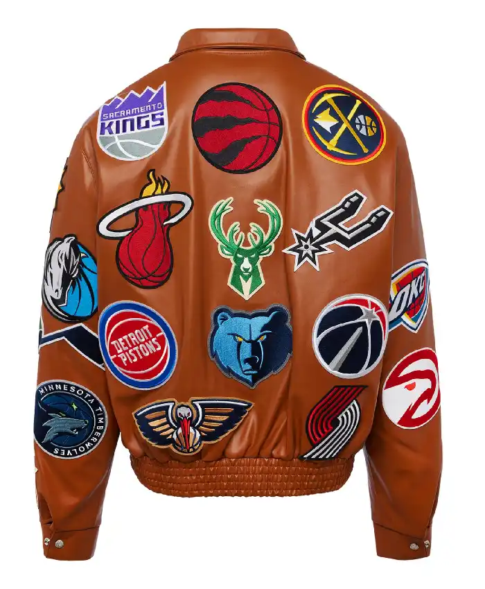 Jeff Hamilton NBA Collage Brown Leather Varsity Jacket For Men and Women
