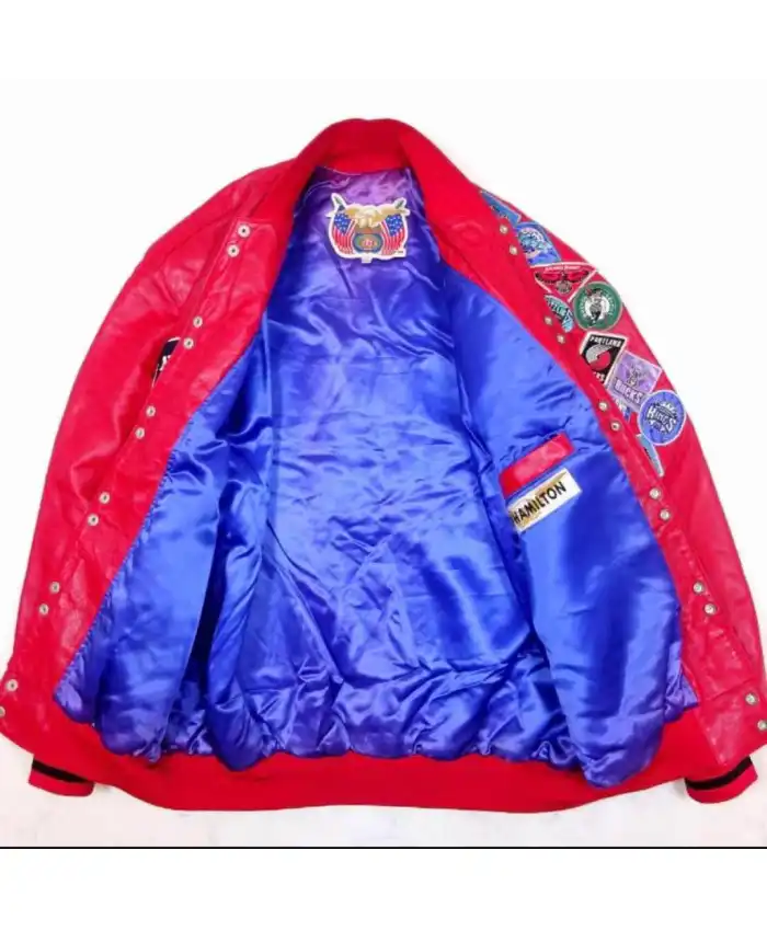 Jeff Hamilton NBA team logo All JH Pink Varsity Leather Jacket Jacket For Men and Women