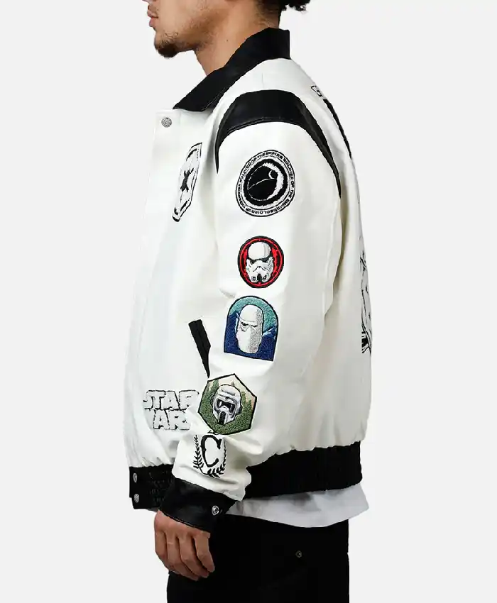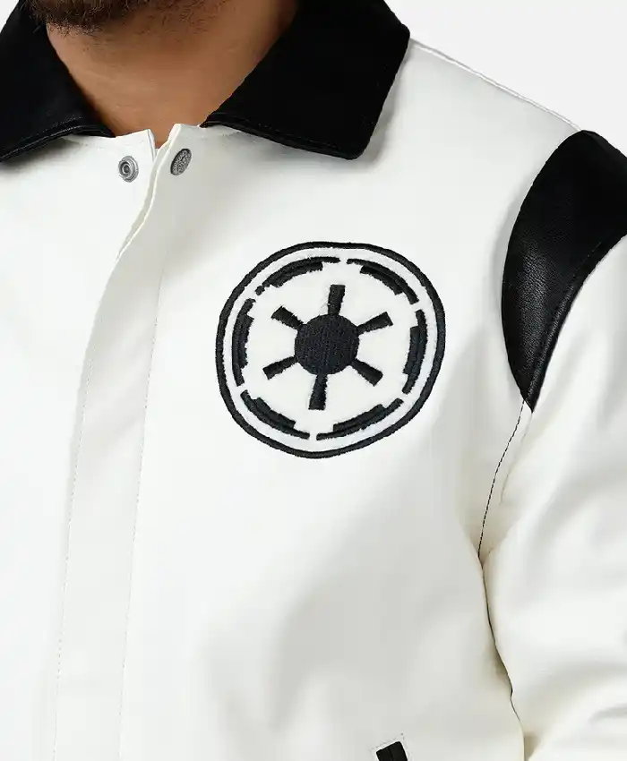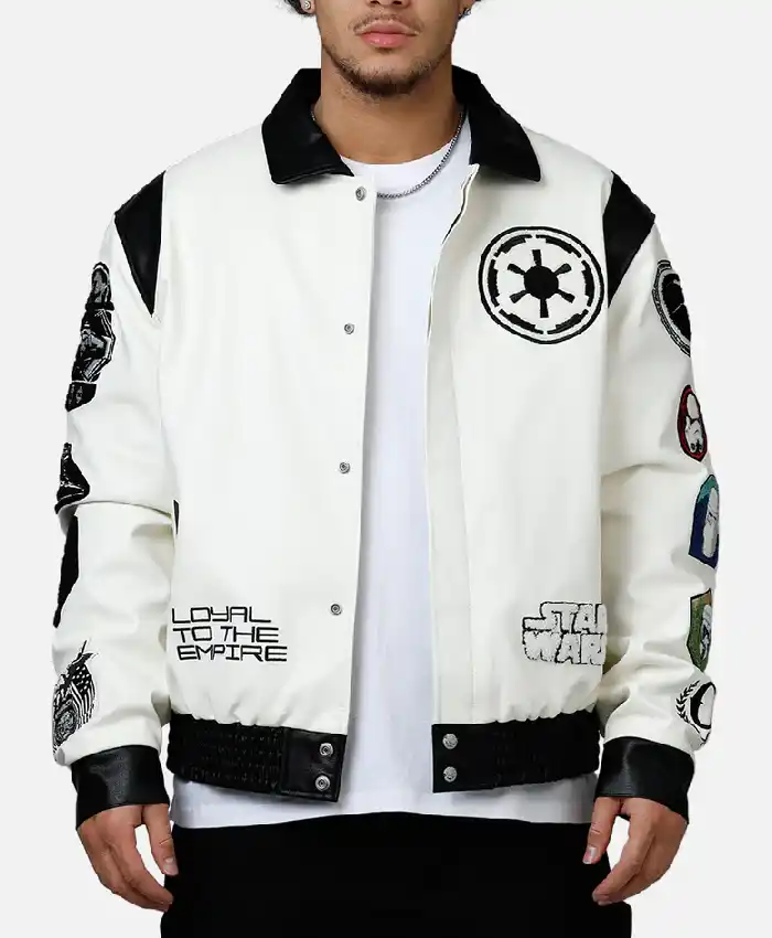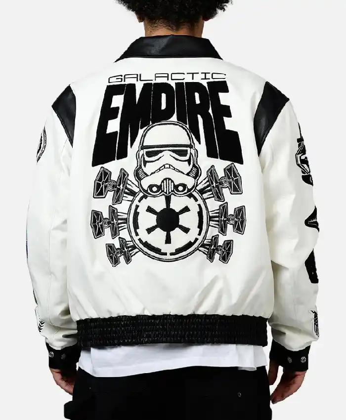 Jeff Hamilton X Star Wars Galactic Empire White and Black Leather Varsity Jacket For Men