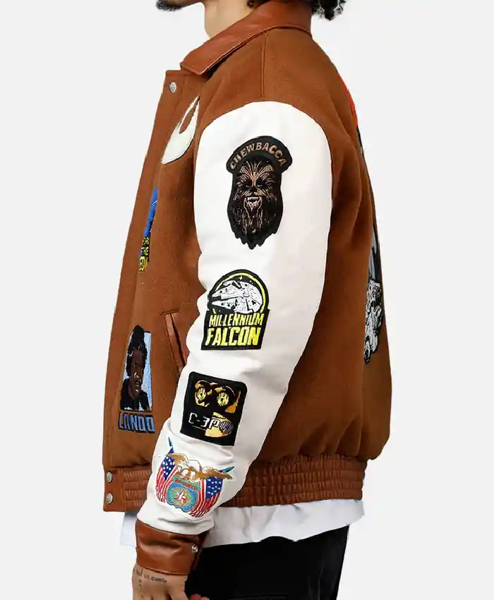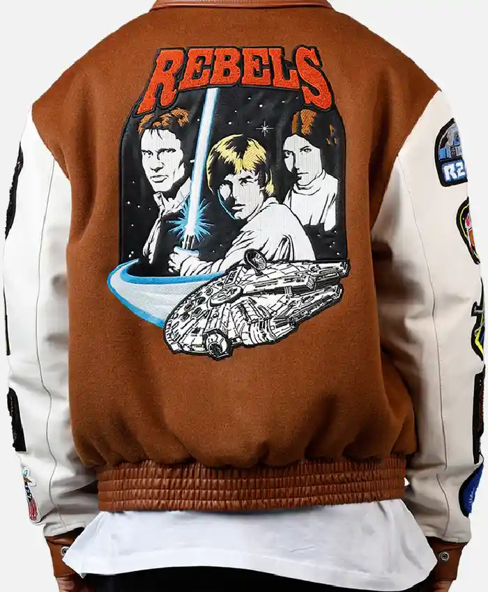 Jeff Hamilton X Star Wars Rebels Brown and White Wool Varsity Jacket For Men