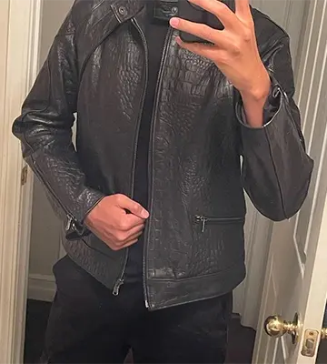 Absolutely love the sleek design. The texture adds so much personality to the classic black leather jacket. Great fit and feels high-end.