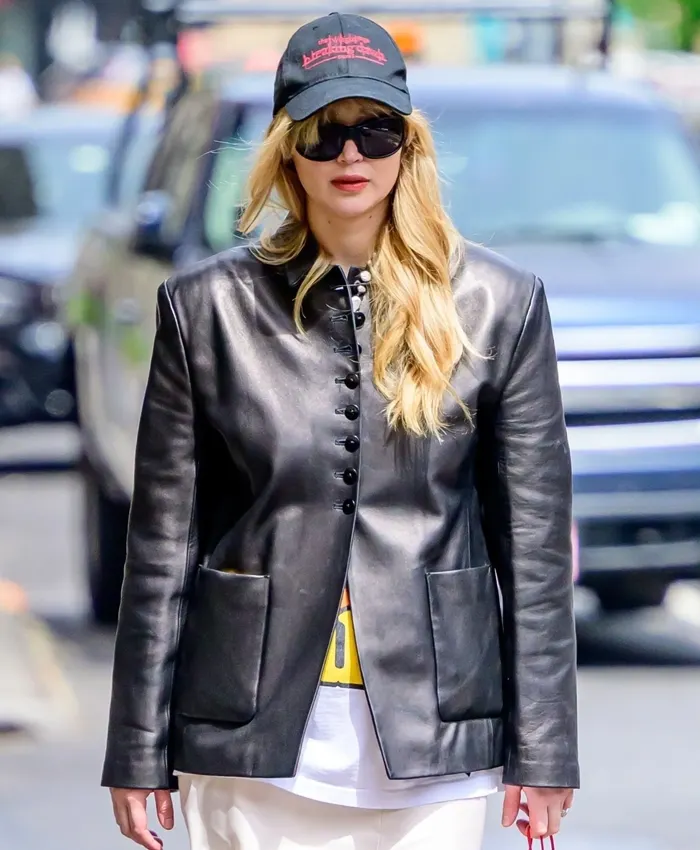 NYC 2025 Jennifer Lawrence Black Leather Warner Blazer