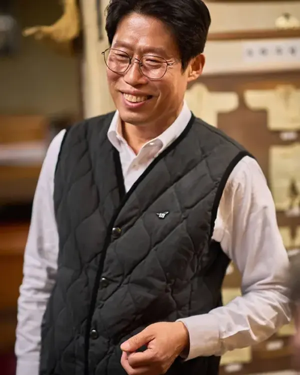 This black quilted vest in Exhuma by Jeon Jin Gi may be styled in a variety of ways to show off its versatility and complement different looks. For a casual streetwear look, pair the vest with a black or grey long-sleeve shirt and cargo pants, completing the look with black sneakers. For a smart casual look, wear the vest over a clean white button-down or simple sweater, tailored jeans, and loafers, making it a classy statement attire.