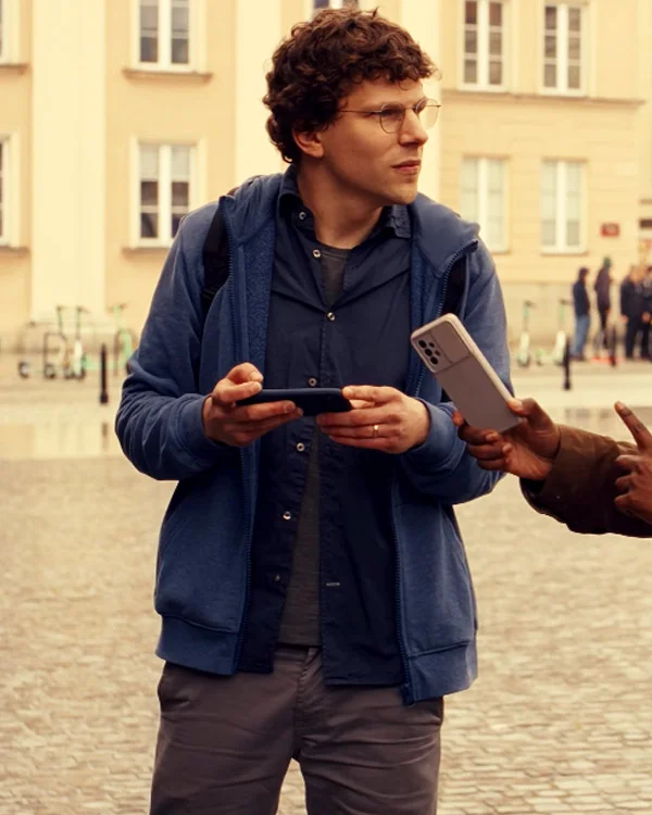 David Kaplan Movie A Real Pain 2024 Jesse Eisenberg Blue Hoodie Jacket