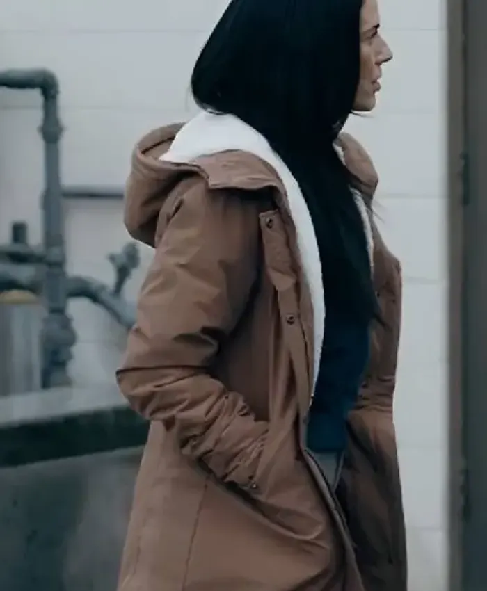 Jessica Lowndes A Stranger’s Child 2024 Donna Fendyr Brown Hooded Coat