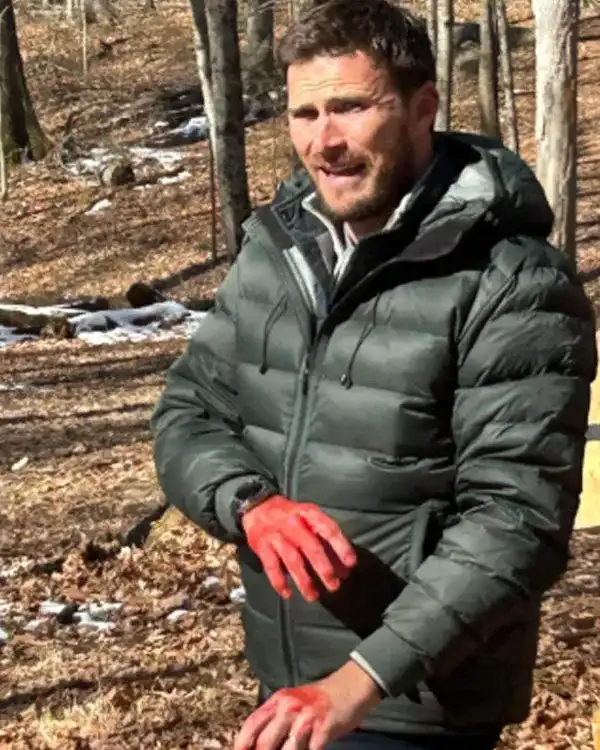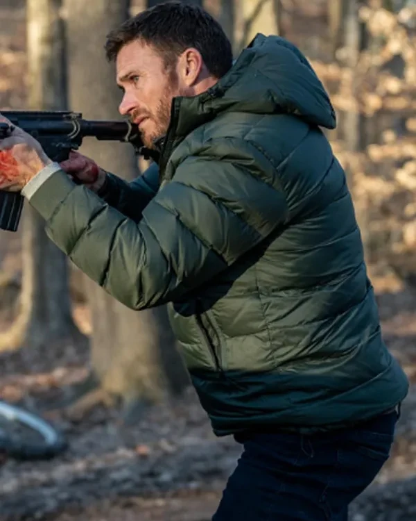 Scott Eastwood Movie Alarum 2025 Joe Travers Green Puffer Hooded Jacket