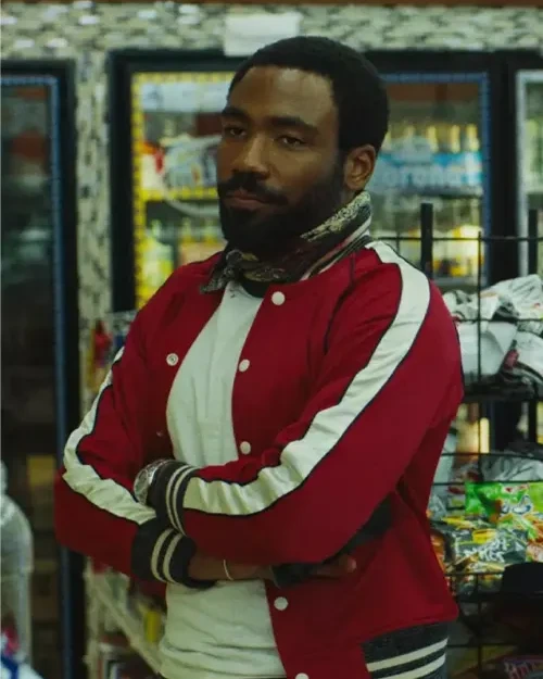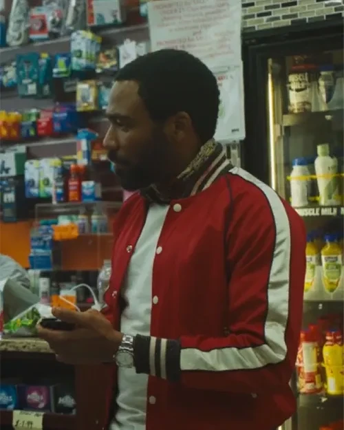 Donald Glover Mr and Mrs Smith 2024 Donald Glover Red Varsity Bomber Jacket