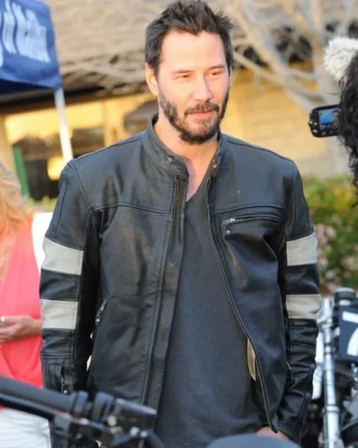 Keanu Reeves Movie 2017 John Wick 2 Cafe Racer Black White Striped Leather Jacket