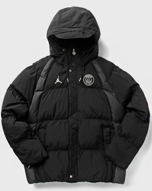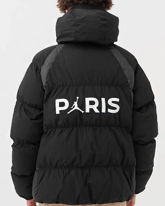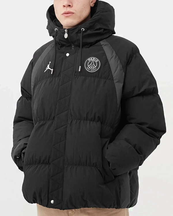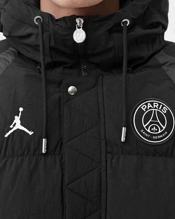 Jordan X Paris Saint Germain Black Hooded Puffer Jacket For Men On Sale
