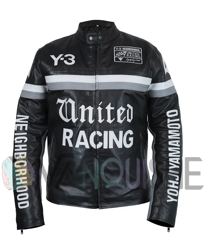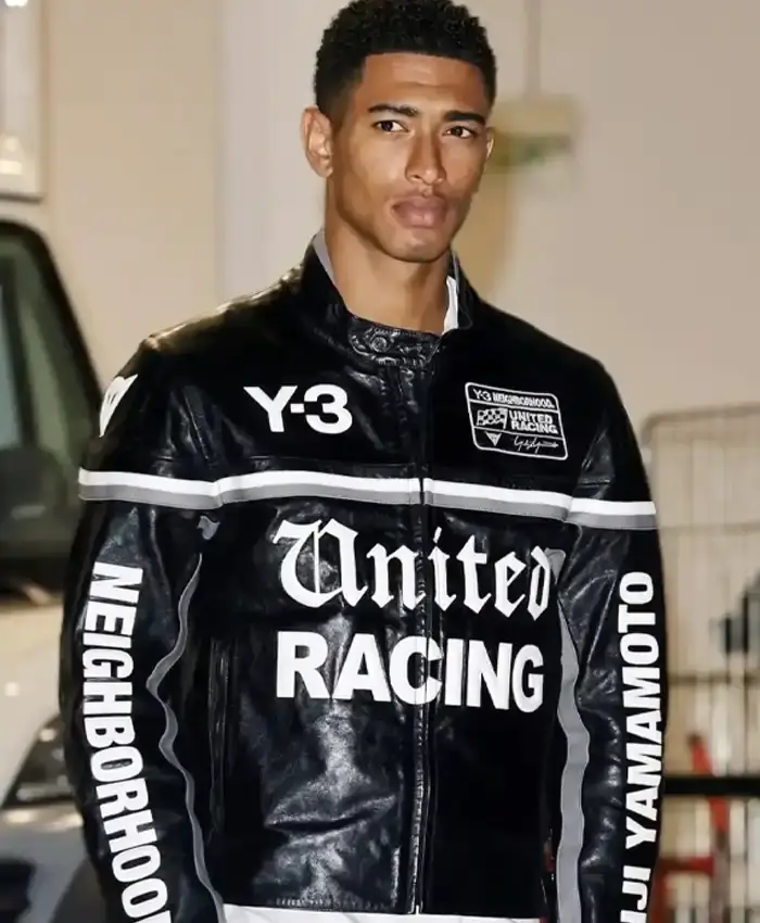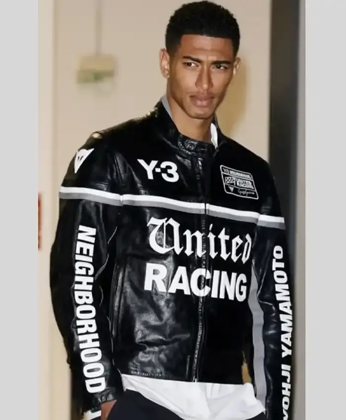 Jude Bellingham Y-3 Neighborhood United Racing Black Leather Motorcycle Jacket For Men