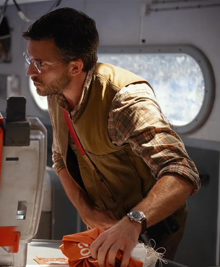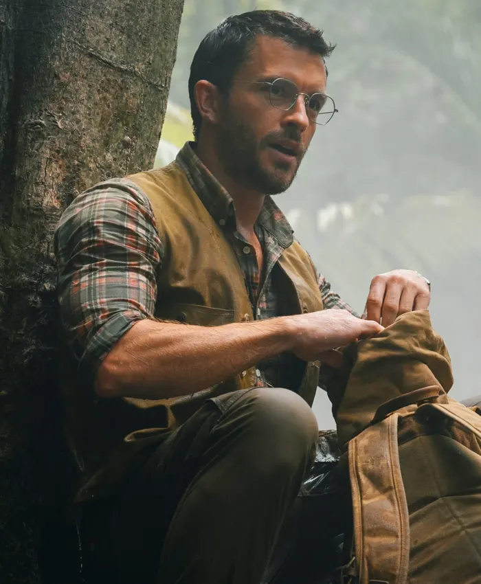 Jurassic World Rebirth Jonathan Bailey Brown Vest