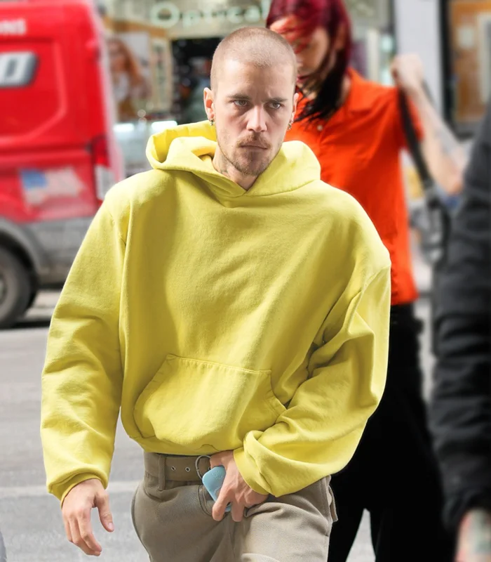 Canadian Singer Justin Bieber New York 2025 Yellow Hoodie