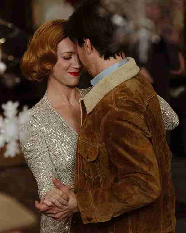David Movie Christmas with the Campbells Justin Long Shearling Suede Leather Jacket