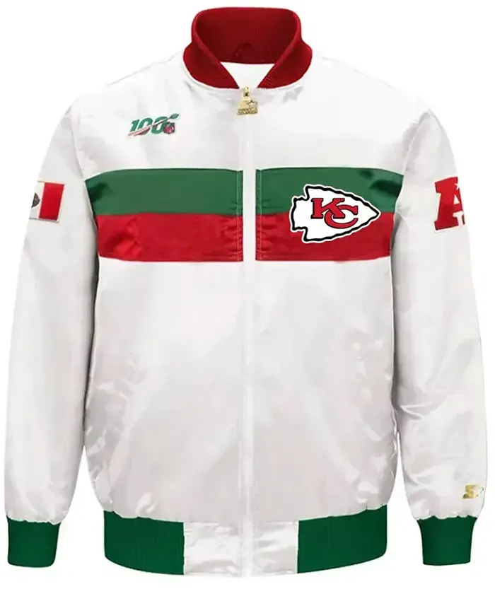 Kansas City Chiefs Mexico 2019 NFL Kansas City Chiefs White & Red Satin Jacket For Mens & Womens