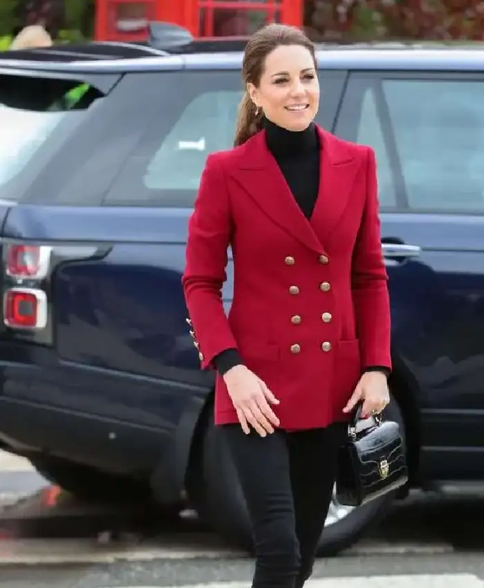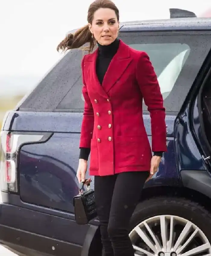 Kate Middleton Duchess of Cambridge Red Wool Blazer Coat For Women