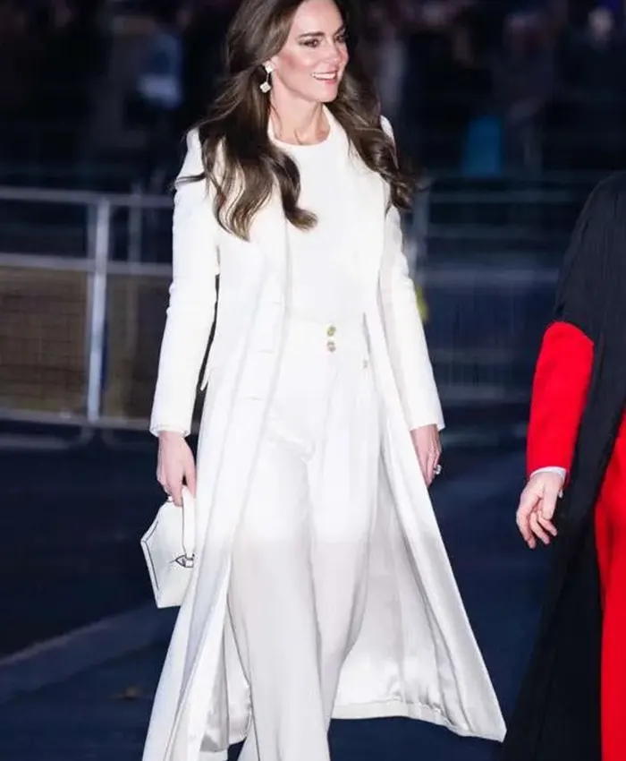 Embrace Royal Elegance Like Kate Middleton with This Christmas Carol White Coat