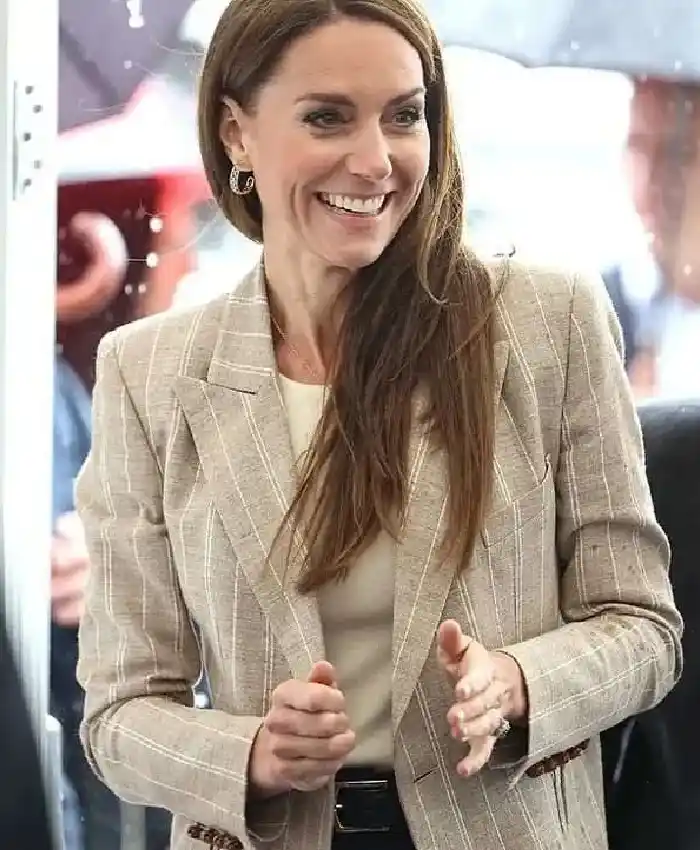 Kate Middleton Princess Of Wales Women’s Pinstriped Beige Blazer