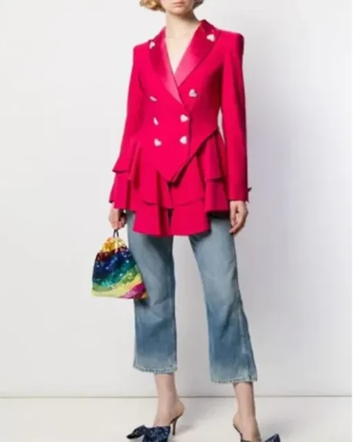 Keeley Ted Lasso S02 Pink Heart Button Wool Blazer
