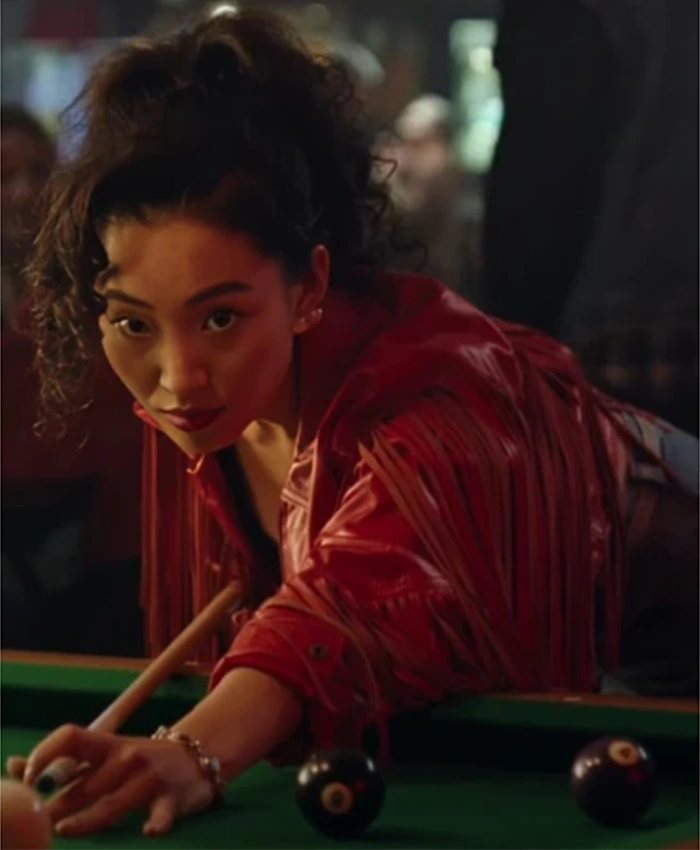 Madelyn Movie Keeper 2025 Christin Park Red Fringed Leather Jacket For Sale