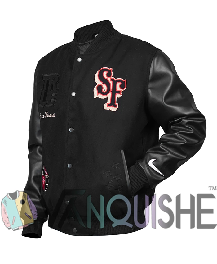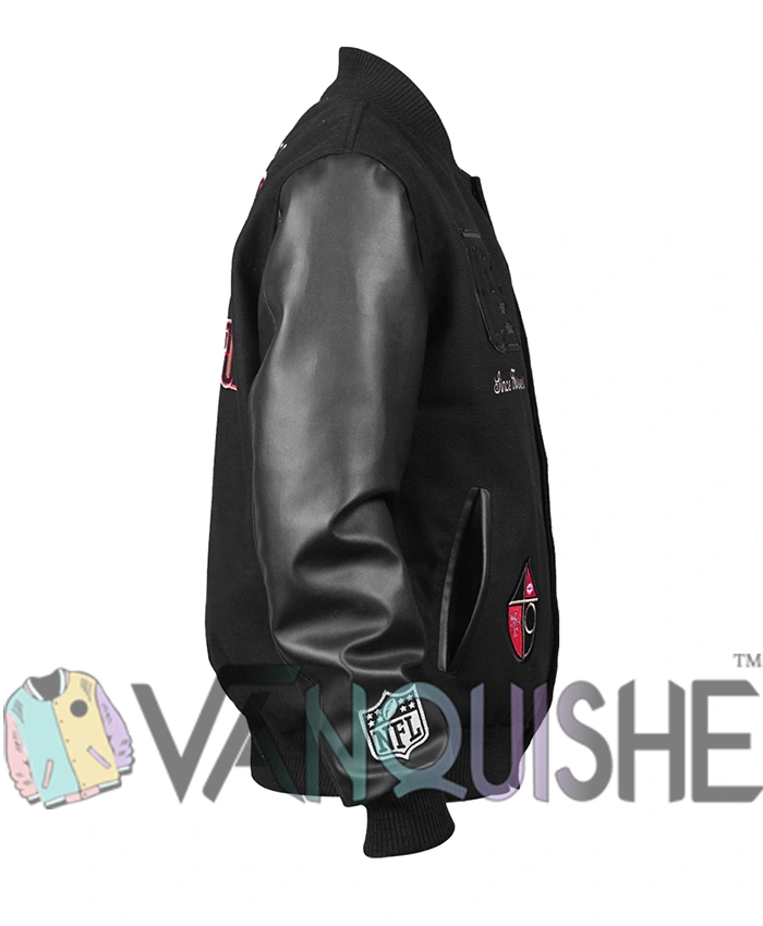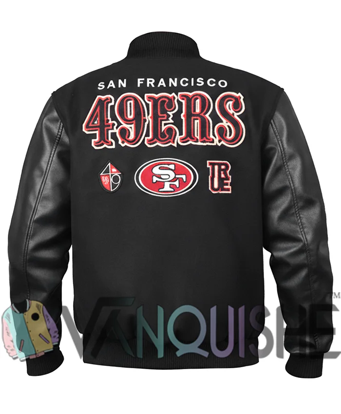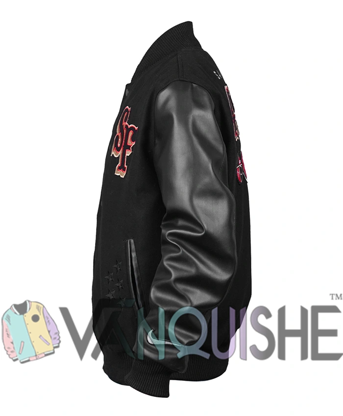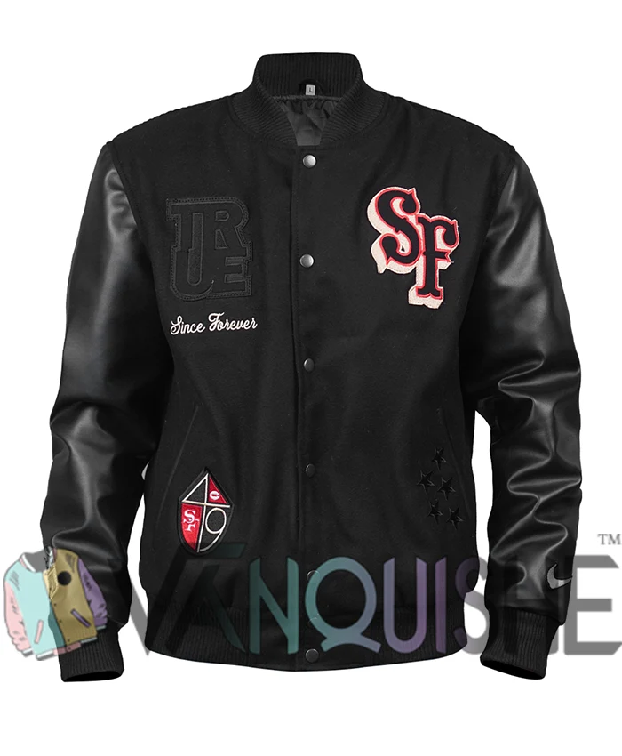 Kendrick Bourne San Francisco 49ers Varsity Jacket Black Wool and Leather Sports Jacket For Men & Women