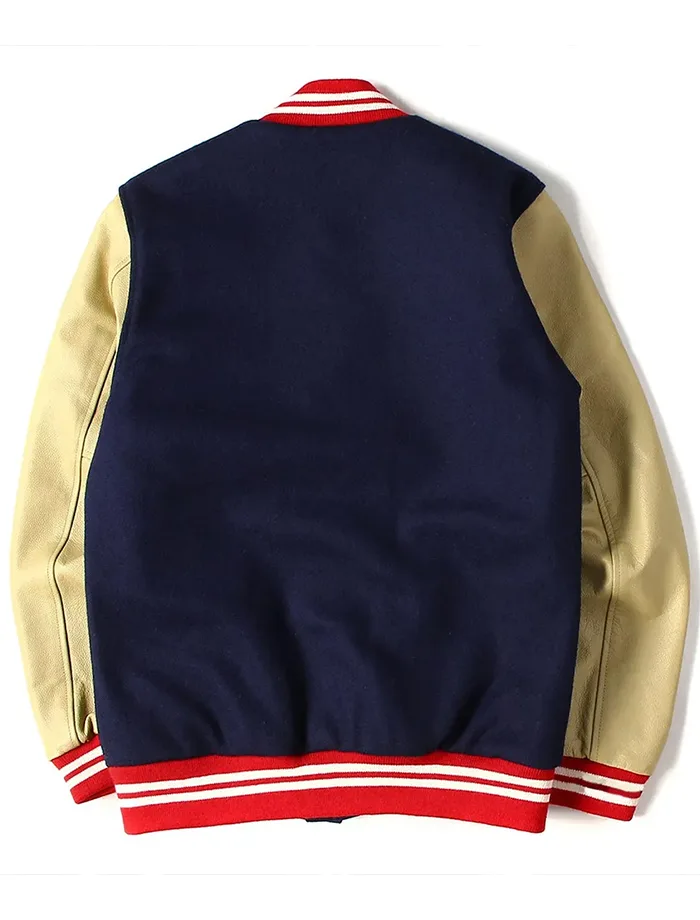This jacket is a place where rap meets the gridiron, so pair it accordingly. The jacket is crafted in blue and beige colors that show it is versatile enough to be paired with a neutral base or black or beige accents. Go with black jeans and black or white sneakers for an effortlessly cool style, or pair with dark denim, cargos with sneakers, and a crisp white tee.