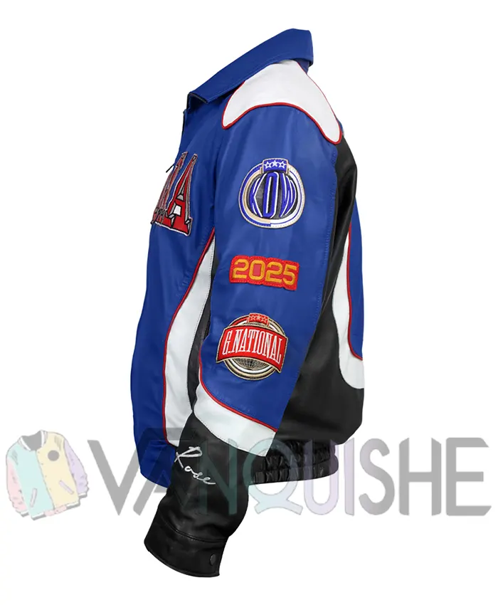 This jacket is a masterpiece! The real leather feels premium, and the stand-up collar gives it a bold, modern look. The zipper closure is smooth, and the blue/black color options are both stunning. Feels like something straight out of a Super Bowl halftime show.