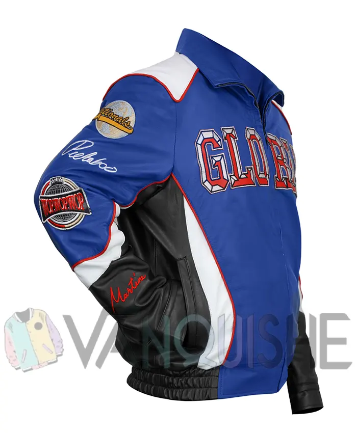 A super bowl leather jacket such as the one described, featuring real leather with a viscose lining, full-length sleeves, a stand-up collar, button cuffs, zipper closure, and two side one inner pockets in blue/black hues, would be right at home in Kendrick Lamar’s wardrobe. This piece combines streetwear edge with high-fashion sophistication—a hallmark of his style. Kendrick Lamar Jacket is crafted to make a statement while maintaining an air of understated elegance.