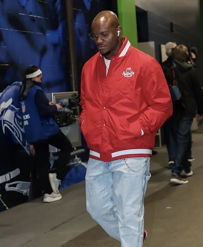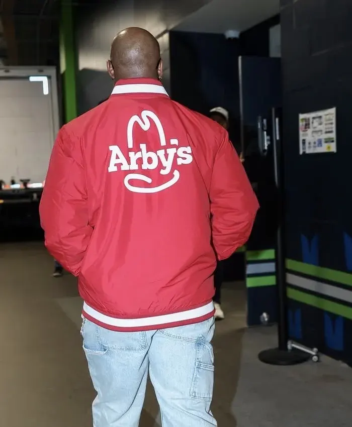 Shop Kenneth Walker Arby’s Commercial Kenneth Walker Red and White Satin Jacket For Men