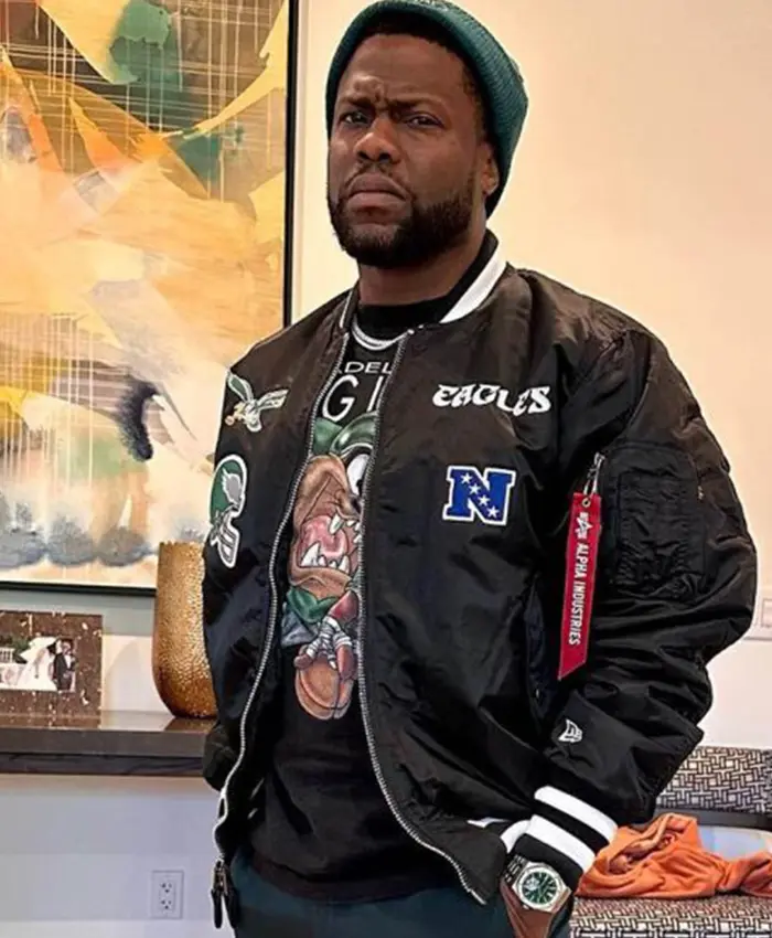 Buy Kevin Hart Philadelphia Eagles Black Satin Bomber Jacket
