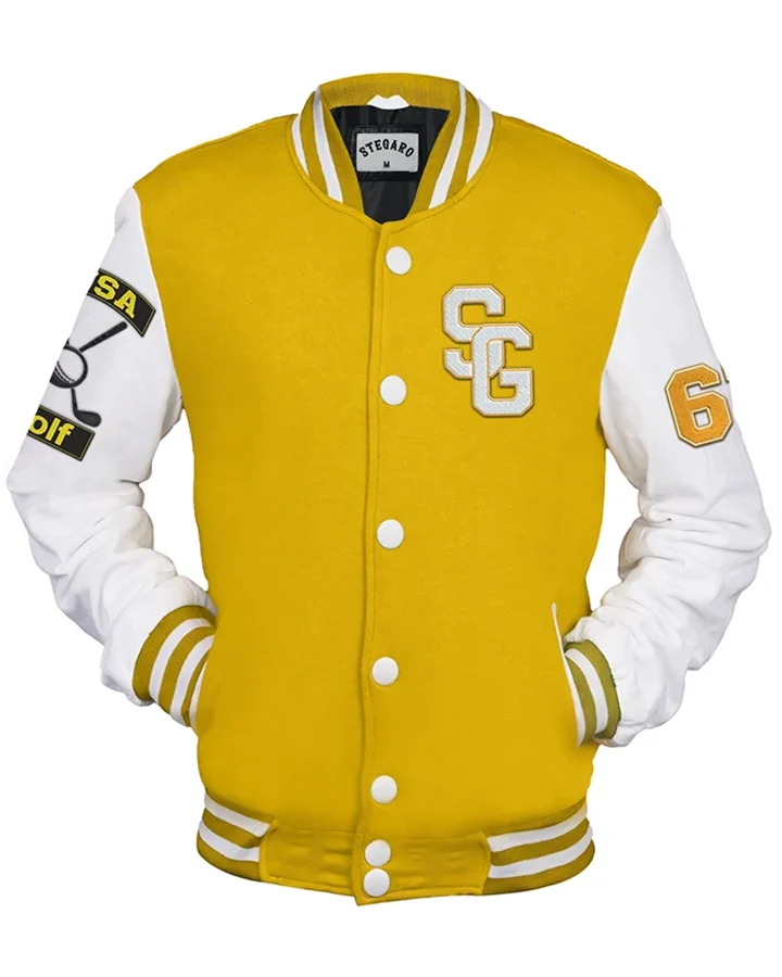 Are you looking to elevate your wardrobe with a splash of sporty elegance? Whether you’re a student, a parent, or simply someone who loves timeless fashion, the Khari Stegaro Golf Yellow and White Varsity Jacket is just what you need! William Jacket has designed this stunning varsity jacket for those who want to combine comfort with style effortlessly.