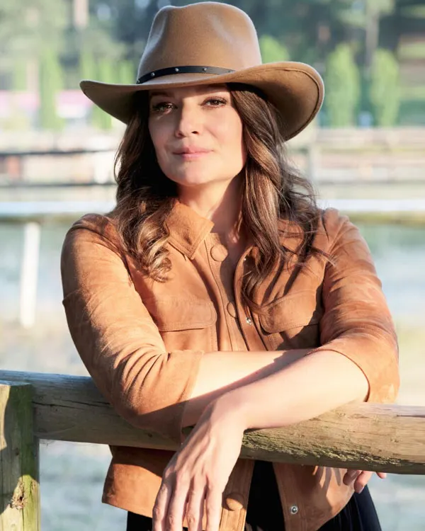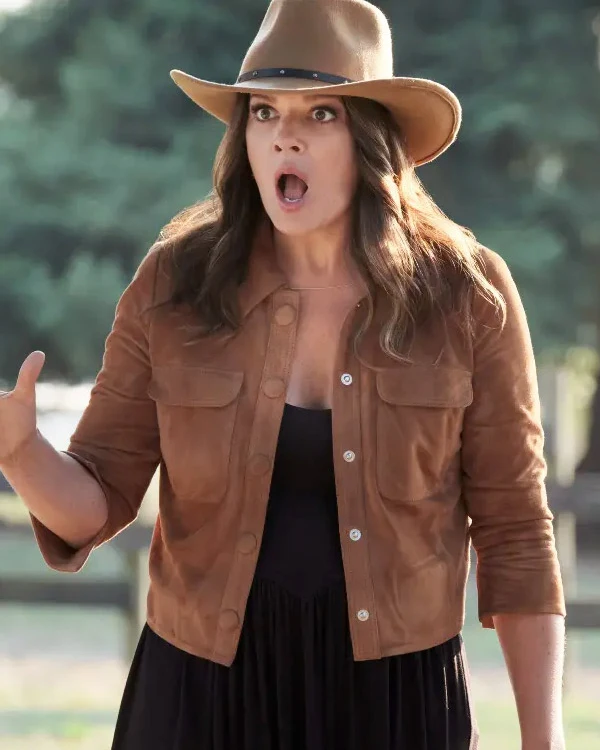 Rebecca Movie The Real West 2024 Kimberley Sustad Brown Suede Leather Jacket